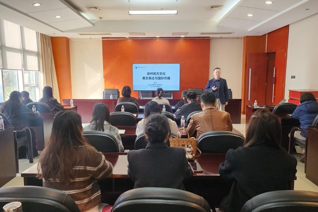 10月28日,徐州市外办以“徐州地方文化英文表达与国际传播”为主题,举办机关外语专题讲座,我院外国语学院教师颜震博士担任主讲嘉宾。参加此次讲座的有来自市文广旅局、徐工集团、徐矿集团、文旅集团、广电集团、报业传媒集团、博物馆、汉文化景区、彭城七里数字体验馆等十余家单位共30余名涉外业务骨干。
