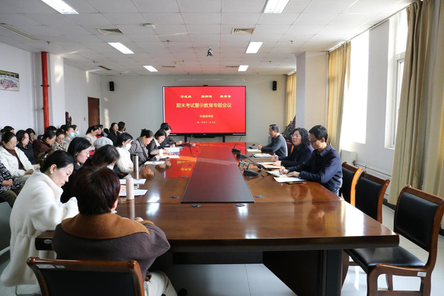 12月10日下午,外国语学院在学院会议室召开期末考试警示教育专题会议。会议紧扣“守底线、强师德、提质量”主题,为相关工作划红线、明准则,筑牢学术诚信与师德师风防线。学院党委书记周珊珊主持会议。