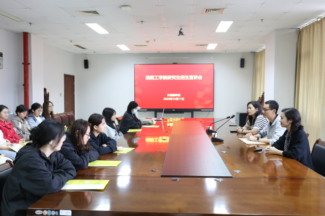 10月11日,淮阴工学院外国语学院副院长郁敏一行莅临我院,开展研究生招生宣讲活动。我院党委副书记马磊以及2022级、2023级相关学生参加了本次宣讲。